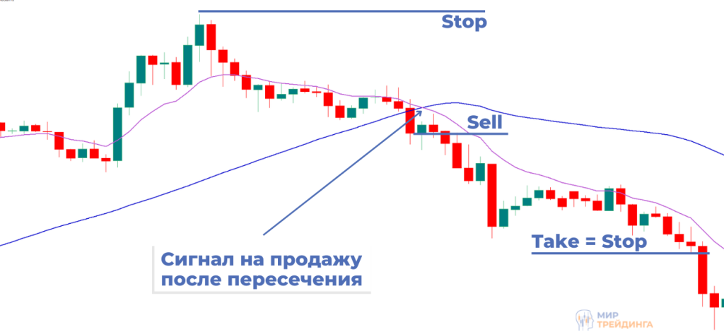 Торговля на пробой трендовых линий. Используются скользящие средние и индикатора Momentum.