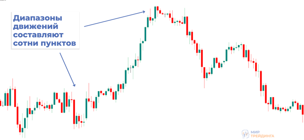 Простыми словами, торговля на форекс является диапазонной. Цена очень много времени проводит в боковых движениях самого разного масштаба. Наибольшая активность наблюдается на совсем маленьких таймфреймах, на которых максимально эффективен скальпинг. Он требует навыков и в целом его можно считать достаточно сложной методикой. Часовые же графики не предполагают анализ колебаний в рамках нескольких десятков минут. Н1 фильтрует такие колебания и оставляет более крупные тренды.
