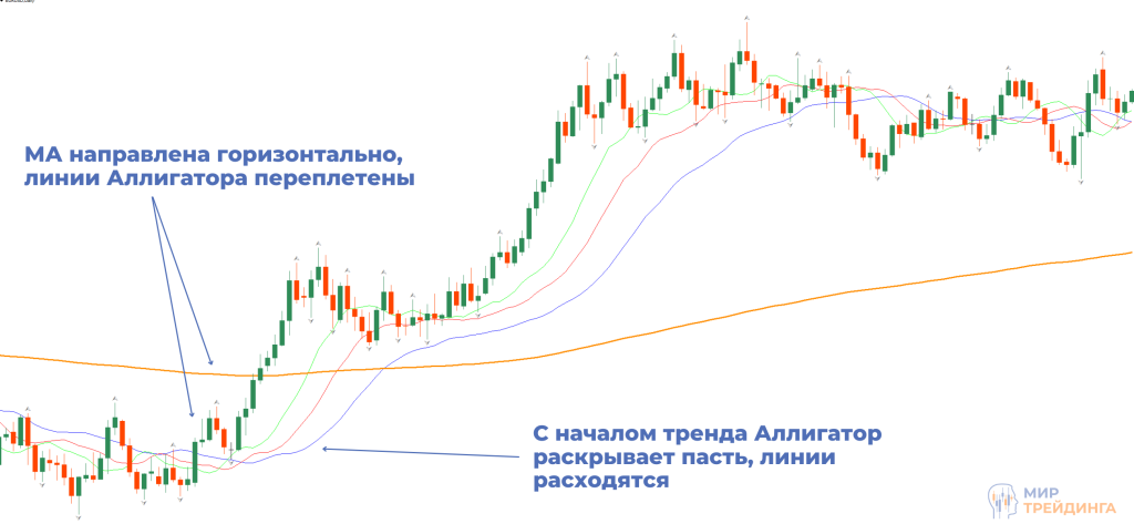 Аллигатор в трендовой стратегии торговли