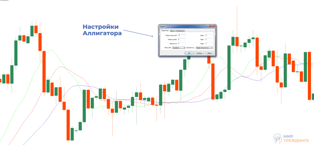 - Настройка индикатора Аллигатор