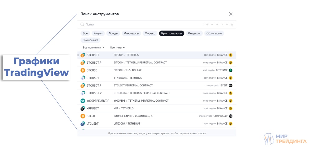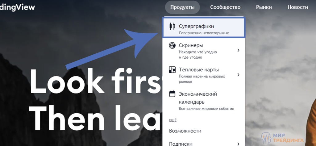 Перейдите на сайт TradingView и во вкладке “Продукты” откройте графу “Суперграфики”. Далее выберите нужный вам график.