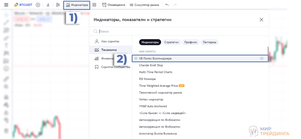 Установка Полос Боллинджера в TradingView