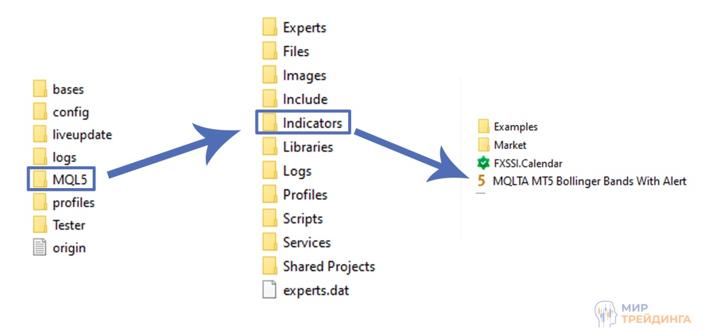 Далее перейдите в “MQL5” и установите содержимое архива в папку “Indicators”.