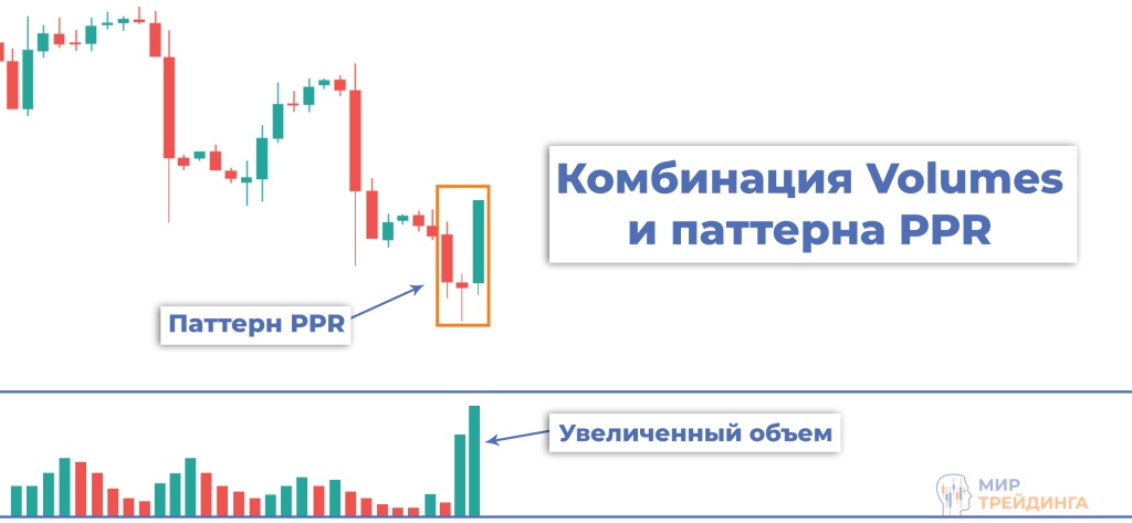 Различные разворотные паттерны будут иметь дополнительную силу, при всплеске объемов. Отлично подойдет паттерн PPR.