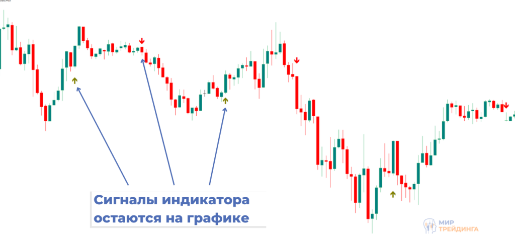 Перечисленные индикаторы не обладают недостатком запаздывания, а также не перерисовывают свои сигналы. Это удобные решения, которые могут быть использованы в торговле даже новичками. Стрелки появляются тогда, когда индикатор в ходе своего анализа определяет точку для входа в рынок. С течением времени стрелки не пропадают. В этом отношении перечисленные индикаторы работают без перерисовки.
