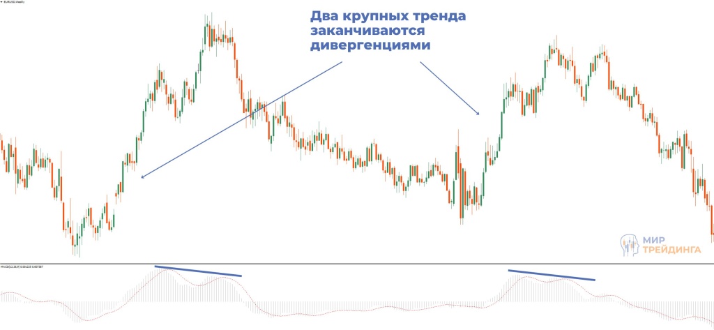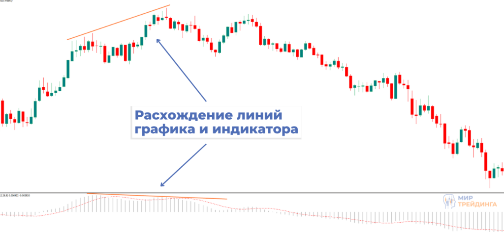 Дожидаемся момента, когда на графике сформируется расхождение, например, в рамках бычьего тренда;