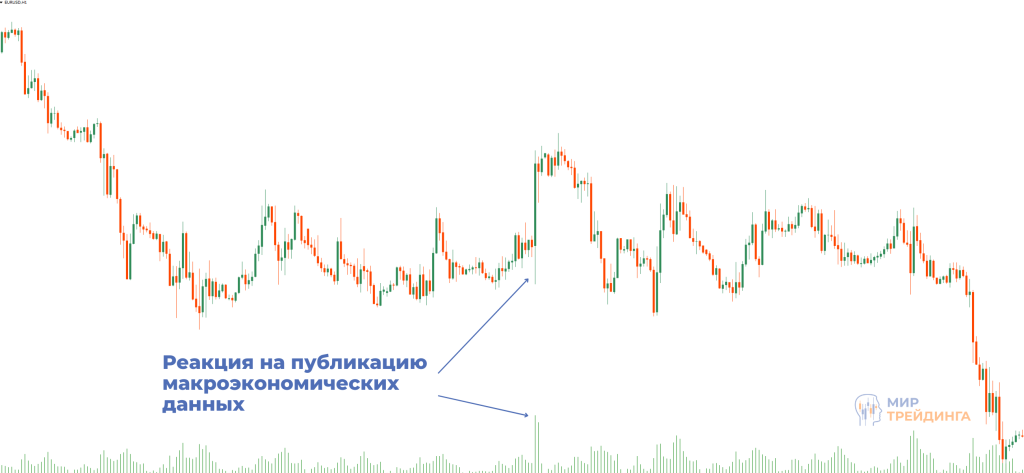 Выход макроэкономической новости. Как правило, после него следует бурная реакция рынка, объемы позволят понять, насколько это соответствует объемам и не является ли такое движение просто действием ограниченного объема денег в условиях крайне низкой ликвидности.