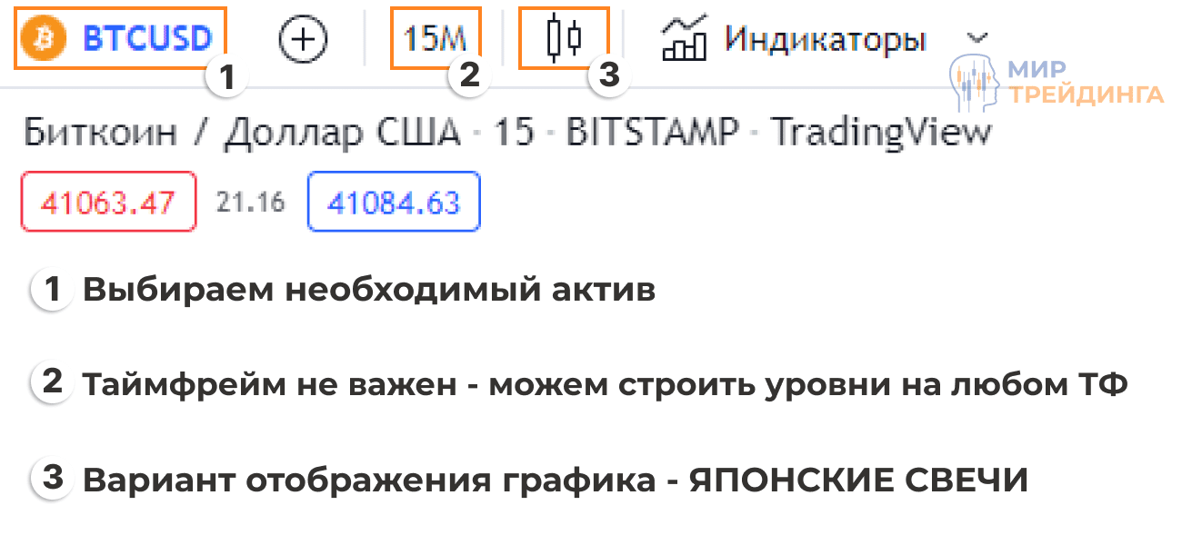 - Открываем график – в нашем случае на платформе TradingView, выбираем необходимый актив.