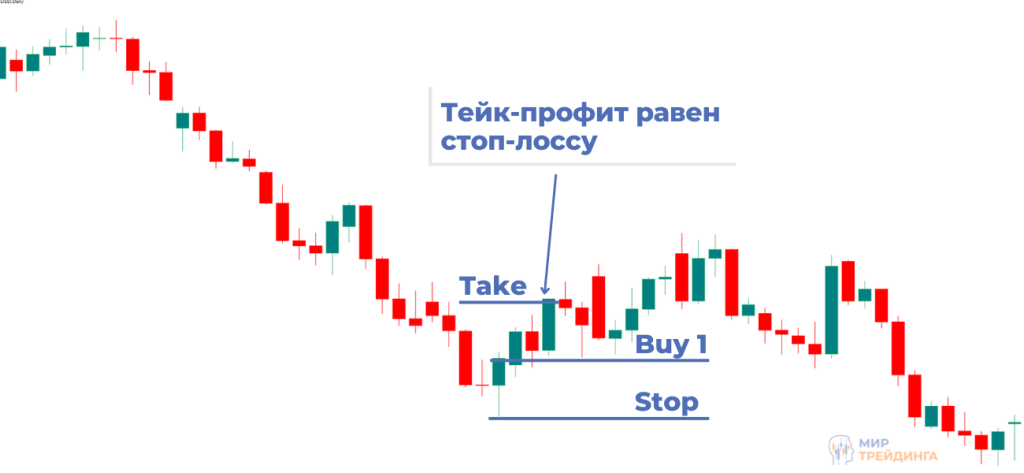 Подождать небольшой откат и покупать после него. Обычно рассматриваются два фибоуровня: 50% и 61,8% от самой свечи. Откат происходит не всегда, это важно учитывать в своей торговле. Преимущество такого входа заключается в том, что стоп-лосс в этом случае будет гораздо меньше.