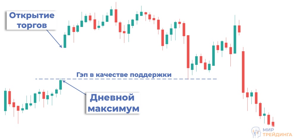 То же самое касается впадин. На уровне поддержки или сопротивления кроме впадины или вершины может также находиться гэп, то есть разрыв на графике: