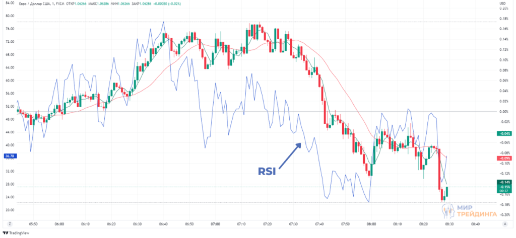 Для торговли по простой торговой системе используйте только один из таймфреймов: от пятиминутного до однодневного. Система представляет собой набор из двух индикаторов: пересечения скользящих средних и индекса относительной силы RSI.