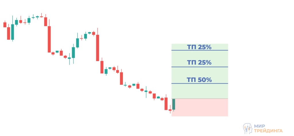 Заметив формирование паттерна PPR, не следует спешить с открытием сделки. Необходимо дождаться закрытия последней свечи паттерна для его подтверждения. Затем откройте позицию с отложенным входом выше последней свечи паттерна. Установите стоп-лосс за минимум PPR. Выставите тейк-профиты по всему предполагаемому движению вверх для того, чтобы минимизировать риски и увеличить прибыль.
