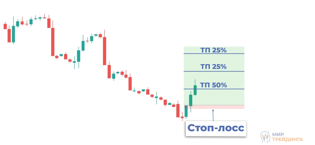 После достижения хотя бы одной из целей будет безопасней для сделки, если вы перенесете стоп-лосс ордер в безубыток.