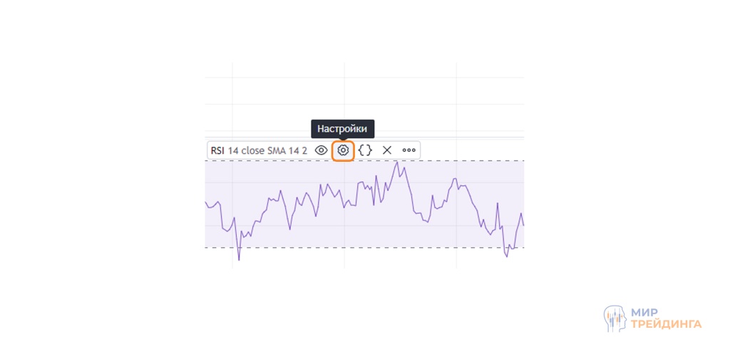 Для того чтобы зайти в настройки индикатора, нужно нажать на шестеренку в окне RSI.