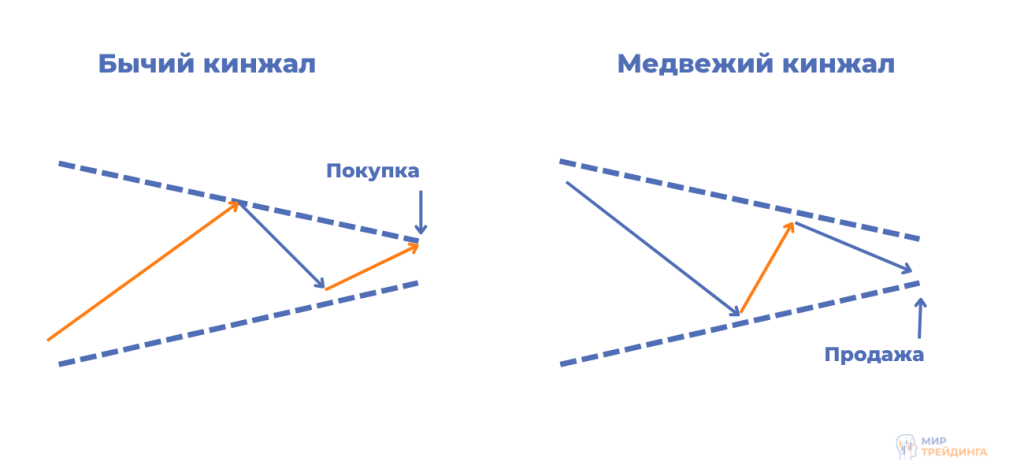 Кинжал — это инструмент входа, основанный на графиках. И он сочетается с волновой теорией Гудмана в том, что первичным элементом рынка является матрица из двух первичных колебаний и одного вторичного корректирующего колебания между ними.