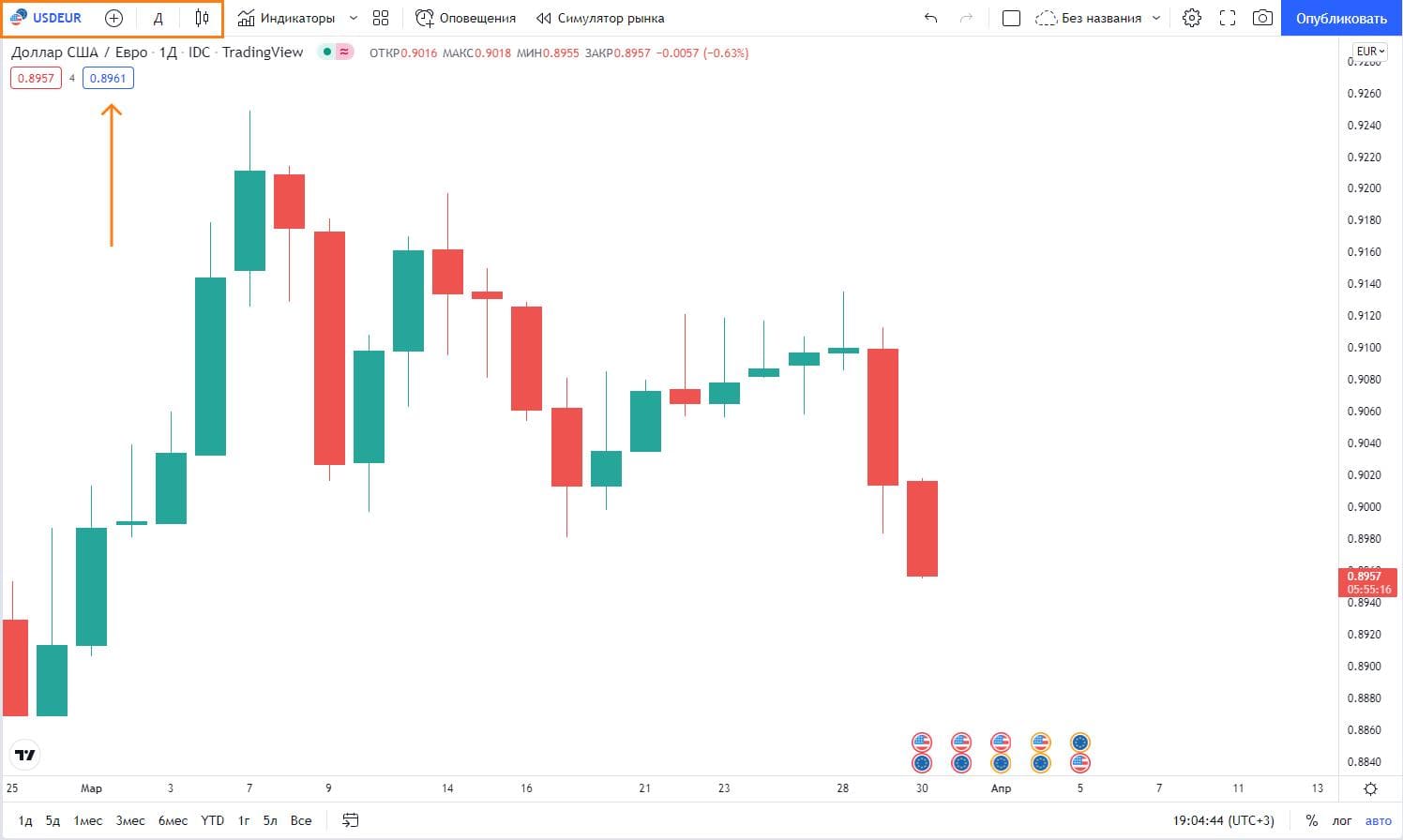 - выбираем нужный актив и таймфрейм;