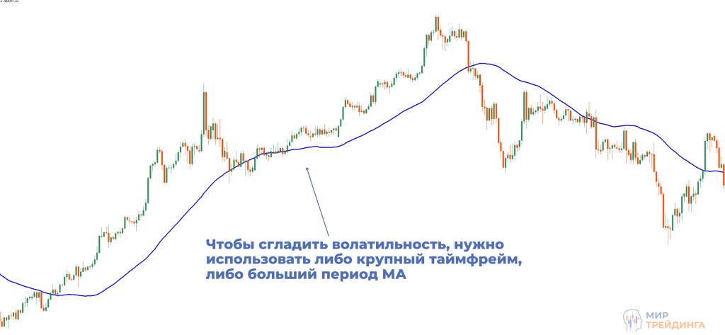 Важнейший аспект, который значительно повысит эффективность работы со скользящей средней. Если торговля ведется на низколиквидном инструменте, то в этом случае рекомендуется: