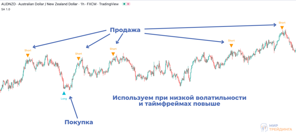Это универсальный индикатор. Он может работать на любом таймфрейме. Также работает без вспомогательных индикаторов. Подходит для любых пар рынка форекс. Для поиска точек входа использует скользящие средние, индикаторы волатильности и фракталы.