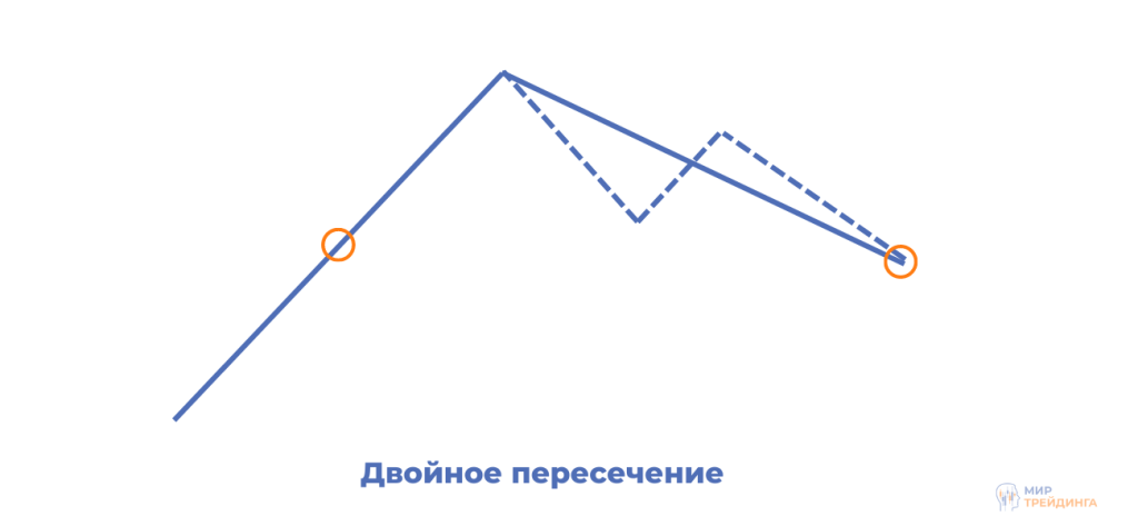 В волновой теории Гудмана в случае несовпадения с 50%-коррекцией происходит компенсация цены. Величина переносится до тех пор, пока не отменяется. Она происходит в случае пересечения, и мы имеем кандидата на сделку.