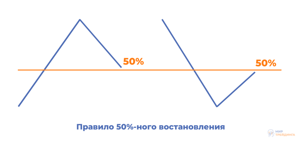 В идеальной матрице цена находит сопротивление или поддержку, скорректировавшись на 50% от своего колебания. Объясняется это тем, что на данном уровне все покупатели и продавцы оказываются в равном положении. То есть половина покупателей и половина продавцов получают прибыль, а другая половина — убытки.
