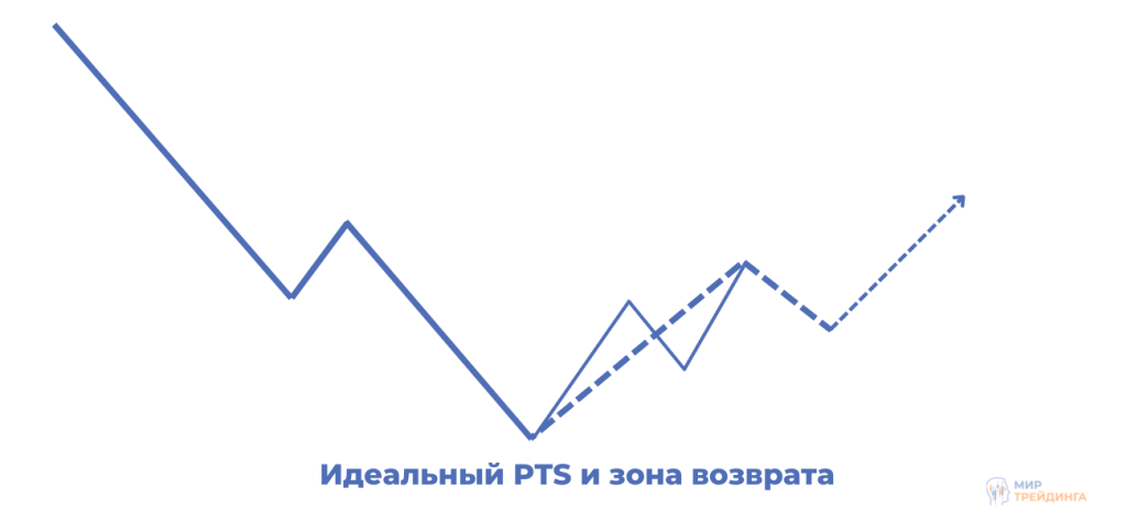Область между точкой перелома первого распространения и конечной точкой второй коррекции называется зоной возврата. Некоторые колебания распространения два останавливаются в зоне возврата, а некоторые немного выше или ниже. В идеале, конечная точка второго распространения должна оказаться в зоне возврата или очень близко к ней.