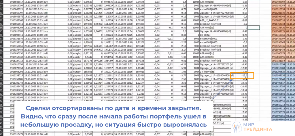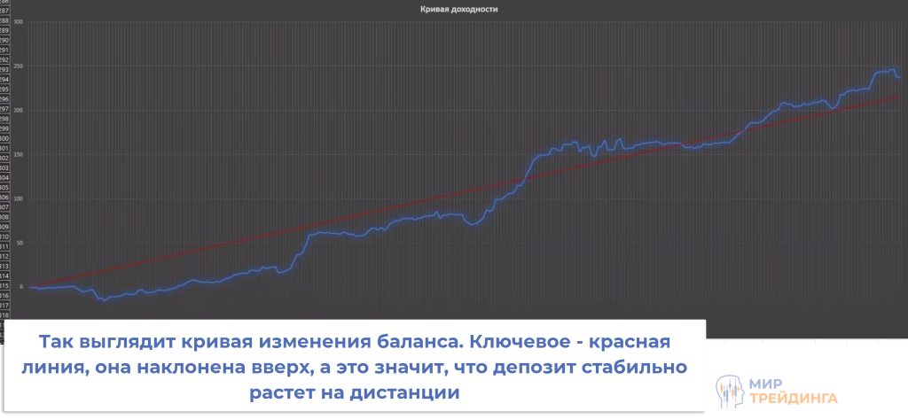 Изначально я не знал об этой особенности и большом стаже ручного трейдинга. Несколько неожиданным оказалось то, что клиент сам ведет отчетность в Excel и строит график кривой доходности. Новички обычно этим не занимаются, их максимум – оценка профита в терминале.
