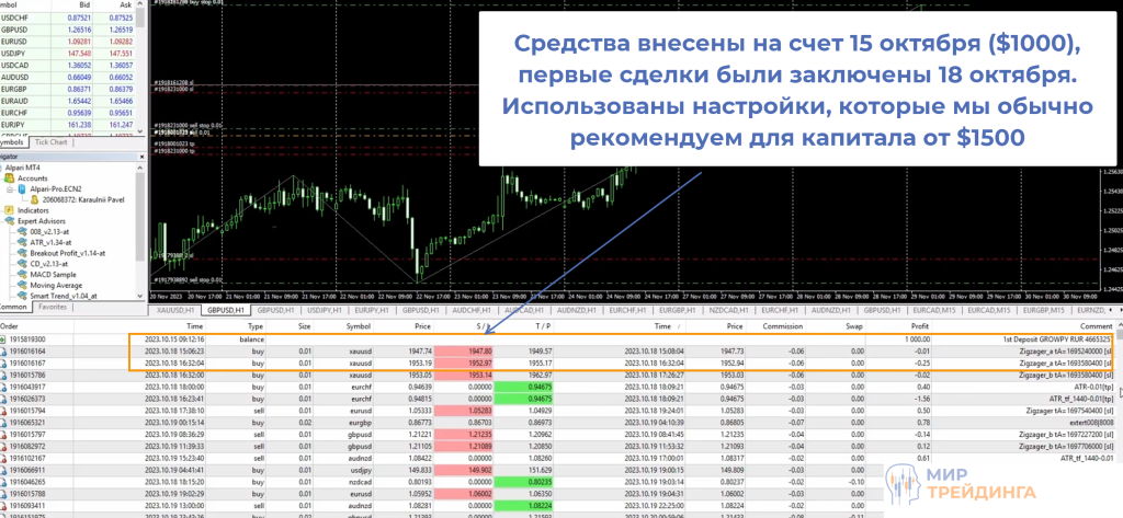 Работа велась с использованием только нашего портфеля советников. В него входят авторские роботы, мы постоянно отслеживаем их эффективность, что дает страховку от неожиданного слива капитала. Такой сценарий исключен, если мы замечаем ухудшение показателей советника, то оперативно оптимизируем его и бесплатно выдаем новые сеты настроек либо корректируем состав портфеля.