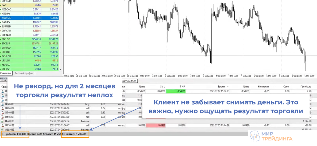 За этот период клиент успел снять $120. Это нормально, постоянно копить прибыль – не лучшее решение. Нужно периодически давать себе ощутить результаты торговли.