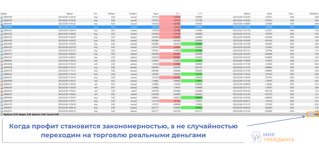 На реальный счет мы обычно переходим после того, как статистика приходит в норму. Трейдер должен продолжительное время торговать в плюс на учебном депозите. Это произошло и с моим учеником, депозит начал расти, прибыль стабильно превышала убыток.
