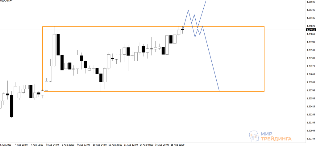 USDCAD находится у верхней границы диапазона 1,3372-1,3501. Оба возможных сценария торговли связаны с реакцией на верхнюю границу этого диапазона: