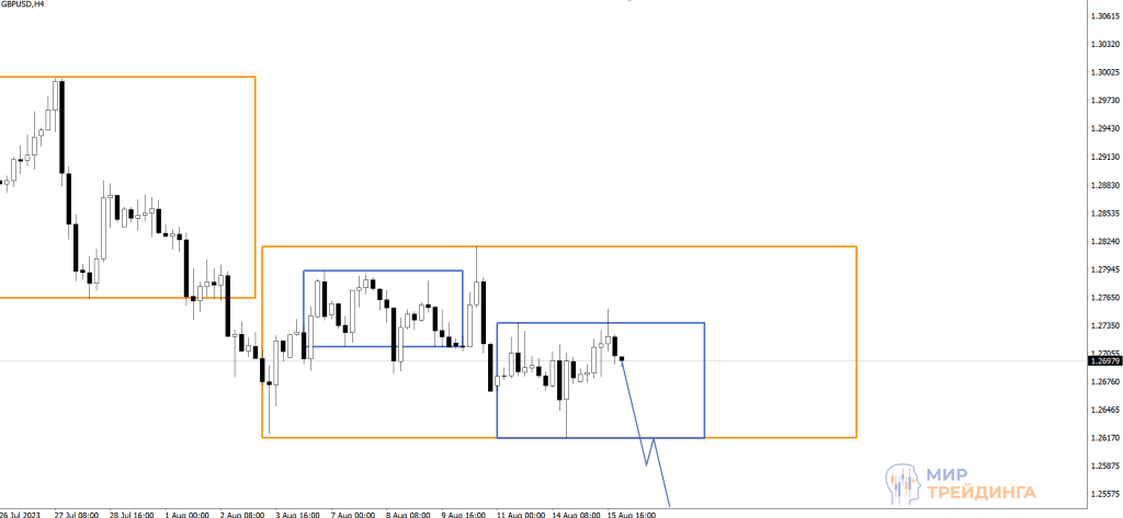 Возможно движение к поддержке на 1,2616. Если увидим пробой этого уровня и его ретест снизу, то можно будет открывать сделки на продажу.
