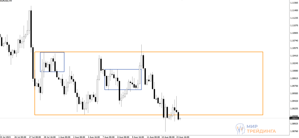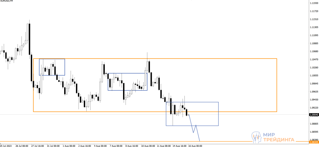 В начале недели наблюдали за попыткой валютной пары вернуться в диапазон 1,0910-1,1048. Неделя началась с формирования локального накопления, но восходящее движение быстро завершилось и возобновилось снижение евро. К началу среды пара опустилась ниже 1,0910.