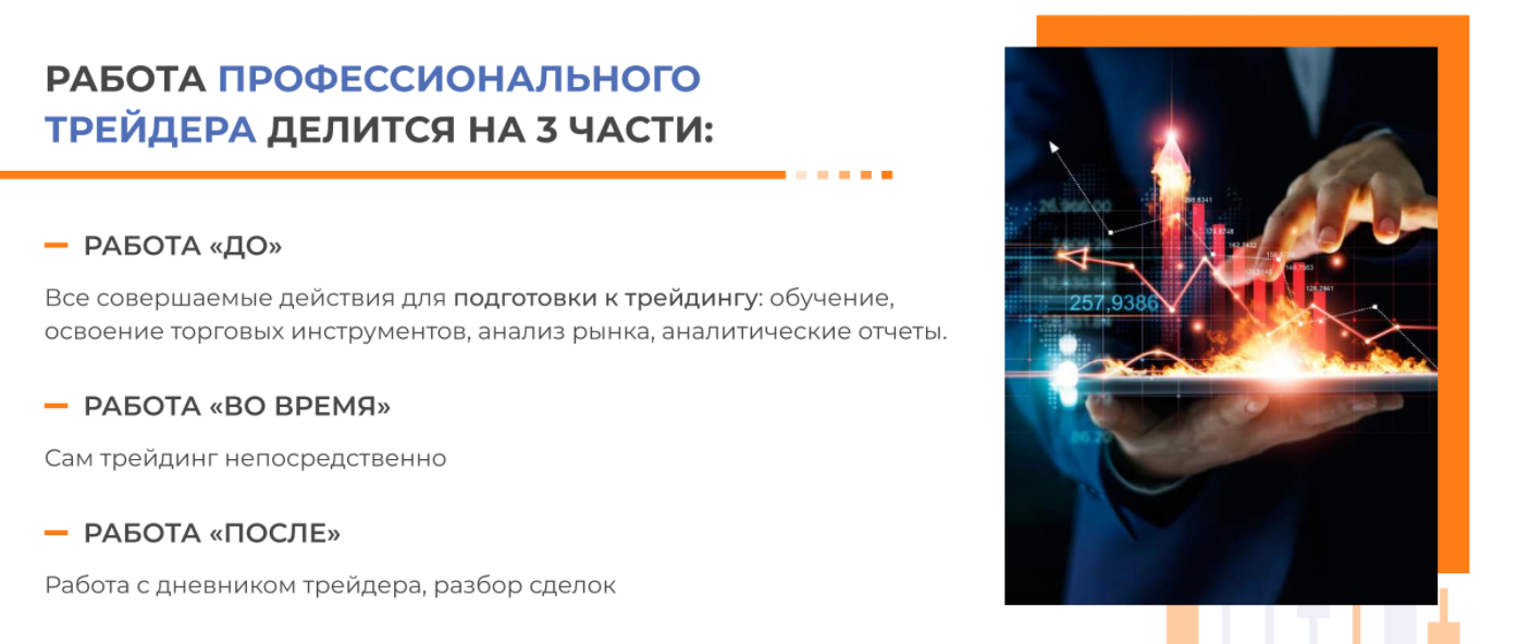 Для торговли по стратегии не нужны никакие дополнительные навыки и знания – полного освоения ее правил, паттернов и алгоритмов будет достаточно. Однако для получения максимальной эффективности работа трейдера должна включать в себя полный спектр действий: до, во время и после торговли.