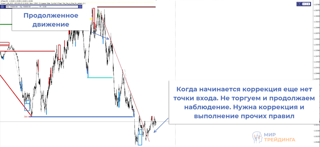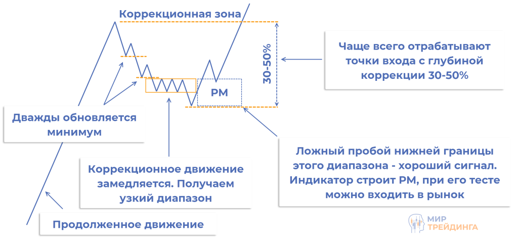 понимание принципа формирования коррекционных зон (КЗ). Для построения КЗ нужно обновления 2 экстремумов по ходу нисходящего либо восходящего движения;