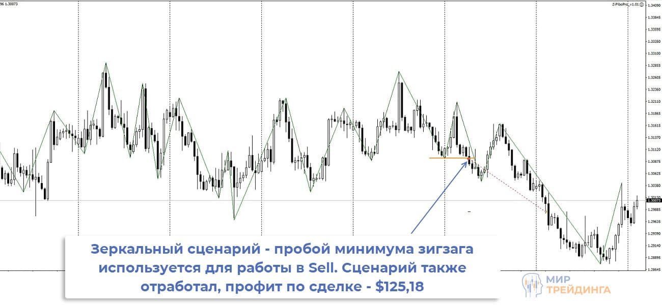 - это трендовый инструмент, поэтому торговля ведется при пробое уровней, построенных по экстремумам зигзага,