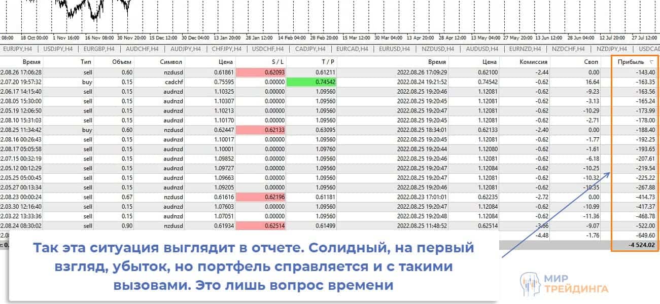 То, что произошло с AUDNZD и роботом Z-Fibo Pro, может случиться с каждым роботом. Главное здесь то, что за счет фиксации убытка мы не позволили депозиту уйти в глубокую просадку и ситуация остается контролируемой. Из этой просадки портфель гарантированно выйдет, в будущем обязательно вернемся к этому и проверим сколько времени понадобится для компенсации убытка.