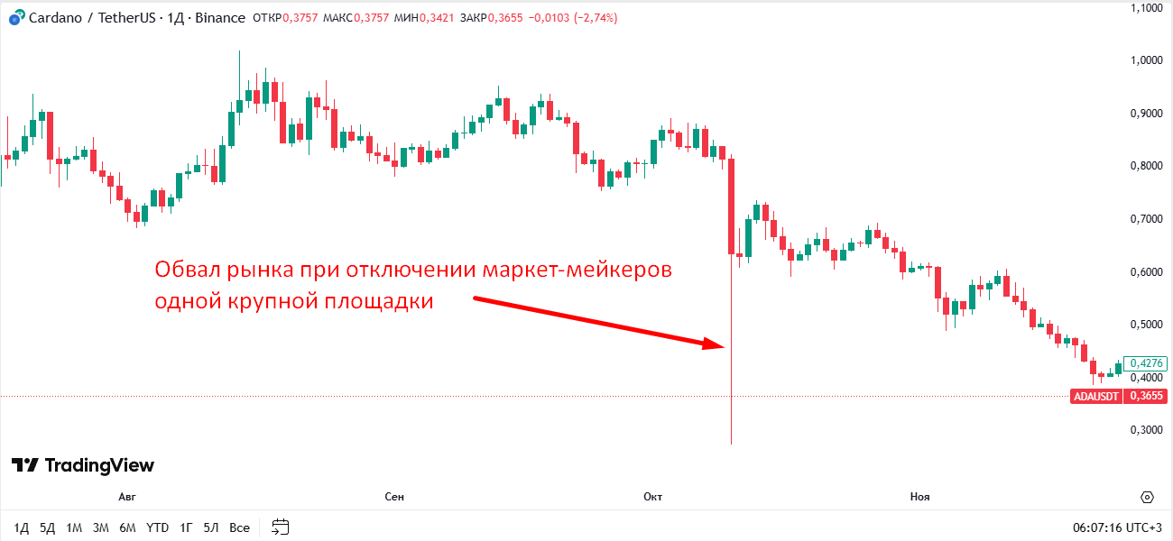 - Возможность манипуляций с помощью HFT-стратегий.