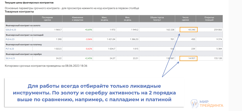 На Московской бирже торгуется несколько типов фьючерсов. Но далеко не все из них подходят для трейдинга. Важно не только наличие контракта на бирже, но и его ликвидность. Без ликвидности на рынке нечего делать.