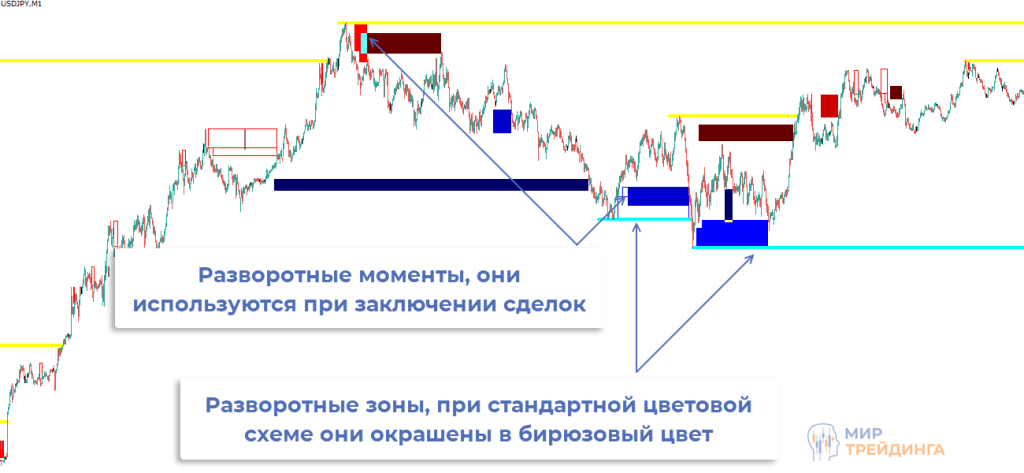 Пока что в индикаторе не отображаются отдельно разворотные зоны глубокой коррекции. В будущих обновлениях это будет исправлено.