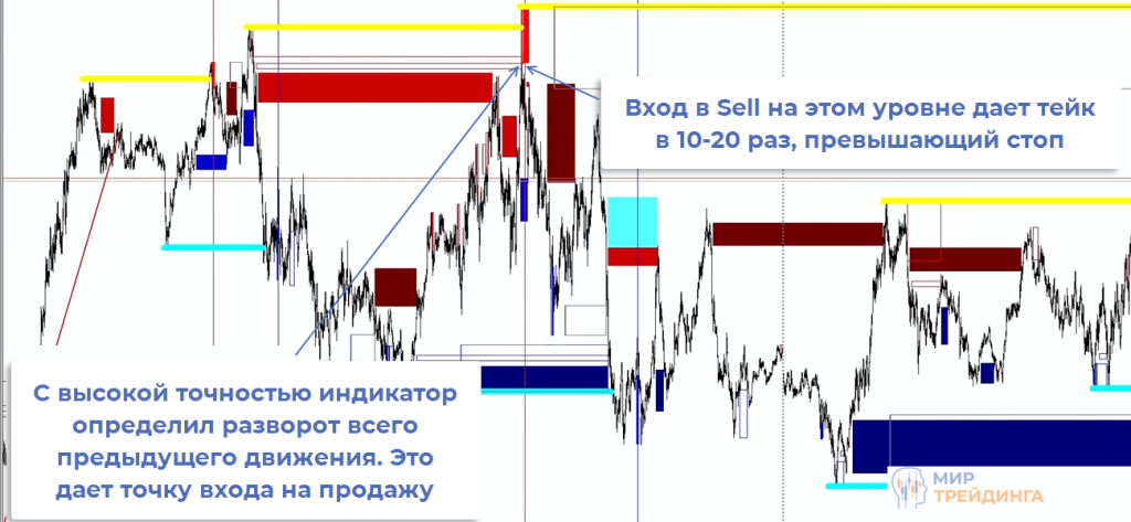 Индикатор основан на одноименной стратегии. Сама ТС – не новинка. Она разработана более 20 лет назад и основана на графическом анализе. С нашей стороны вносились изменения, связанные с необходимостью разработки индикатора.