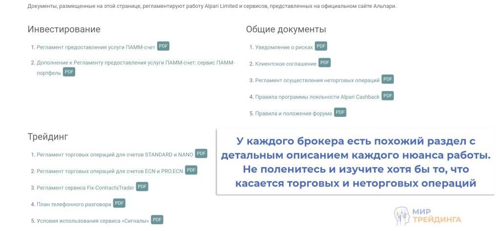 клиентское соглашение. Изучите его и особое внимание уделите торговым и неторговым операциям. Там могут быть подводные камни, о которых не говорится на главной странице сайта брокера;
