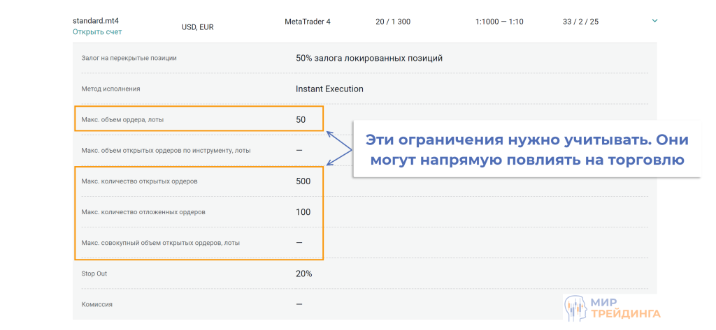 возможные ограничения по торговле. Брокер может ограничить, например, количество сделок, открытых за одну сессию или ввести лимит по числу одновременно открытых позиций;
