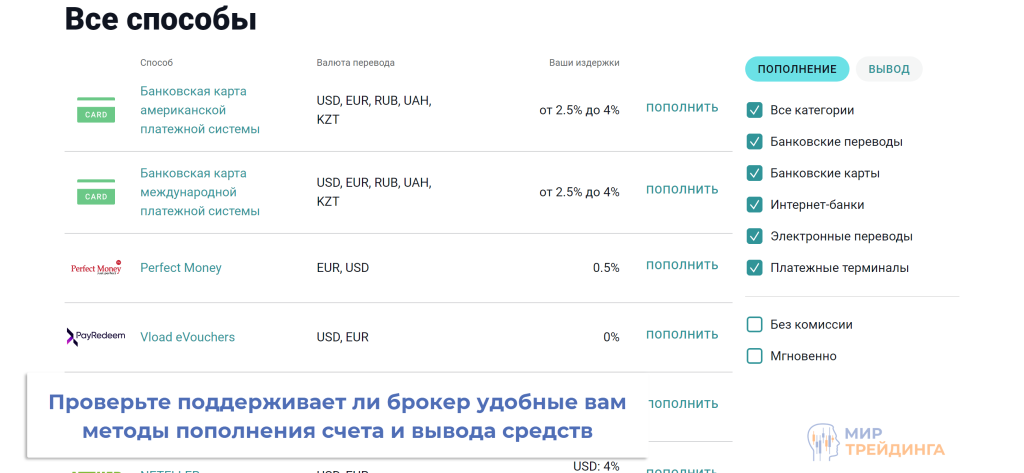 пополнение счета и вывод средств. Важна и скорость обработки заявок, и поддержка удобных методов. Негласным стандартом стала поддержка банковских переводов, карт и кошельков популярных ЭПС;