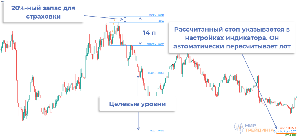 Ту же логику можно использовать для любой торговой стратегии. Нужно просто каждый раз менять значение стопа в настройках индикатора и будете получать нужный размер лота.