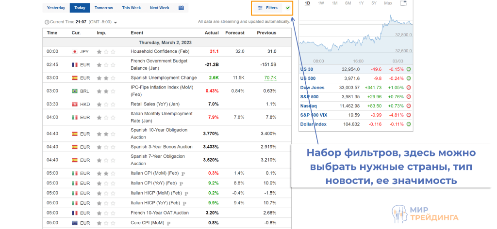 Обычно при фундаментальном анализе используются агрегаторы – ресурсы, дающие полную информацию обо всех значимых событиях. В случае с Форексом речь идет об экономических календарях. Они есть и на сайтах брокеров, и на информационно-аналитических ресурсах. Есть фильтры, можно отобрать только самые сильные новости, задать временной промежуток, выбрать нужные страны.