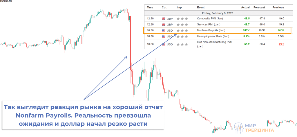 на Форексе речь идет о данных по занятости, ВВП, инфляции, Nonfarm Payrolls, изменении ставки, комментариях регуляторов;