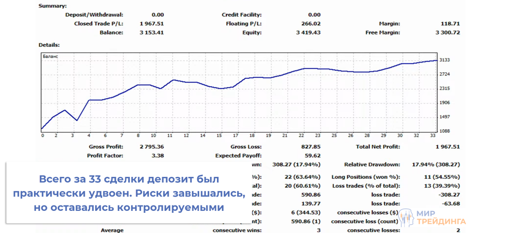 Так выглядят отчеты большинства моих учеников. Отличается только динамика роста депозита, просадка и прочие метрики из отчетов. Но общая динамика сохраняется – депозиты растут, во многом это происходит за счет грамотной комбинации временных интервалов.