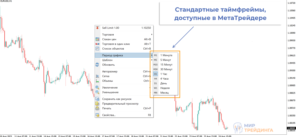 В МетаТрейдере доступны таймфреймы от минутного до месячного. В других терминалах могут быть другие временные интервалы, в том числе и меньше минутных.