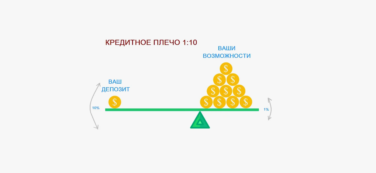 Торговое плечо – это кредитное усиление вашей позиции, предоставляемое брокером. Оно позволяет управлять суммой, которая во много раз превышает ваш собственный капитал. Проще говоря, плечо является коэффициентом, показывающим, во сколько раз можно увеличить торговый объем: