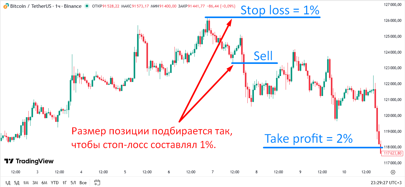 - Определите риск на сделку. Безопасное значение обычно составляет 1–3% от депозита.